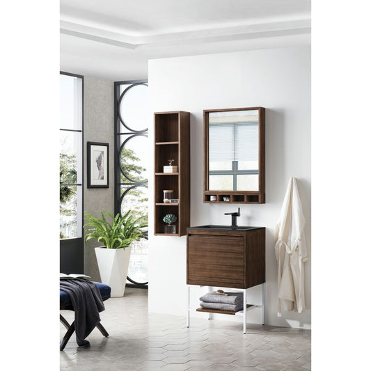 Milan 23.6" Single Vanity Mid Century Walnut Black w/Glossy White Composite Top