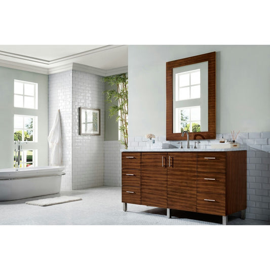 Metropolitan 60" American Walnut Single Vanity w/ 3 CM Carrara Marble Top