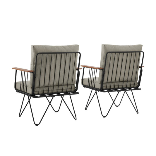 Rio 2 Piece Metal and Wood Hairpin Leg Patio Chair - Sandstone
