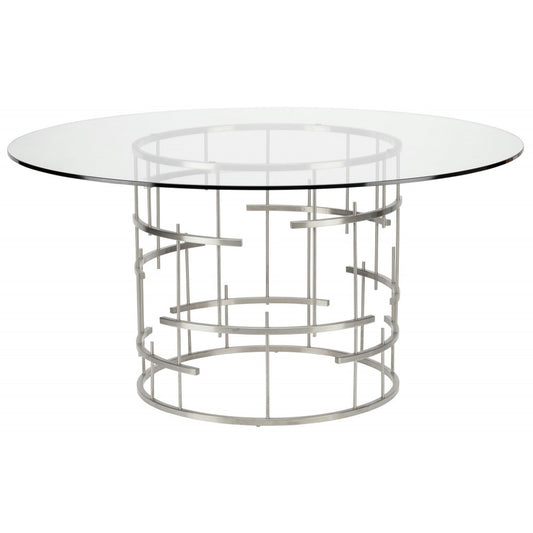 Round Tiffany Silver Metal Dining Table