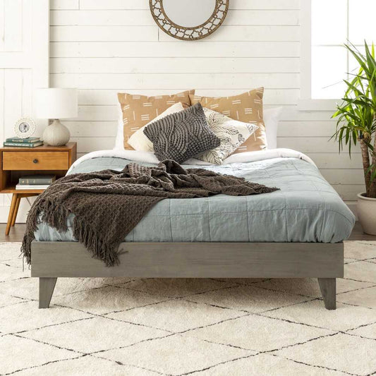 Solid Wood Queen Platform Bed - Gray Brush
