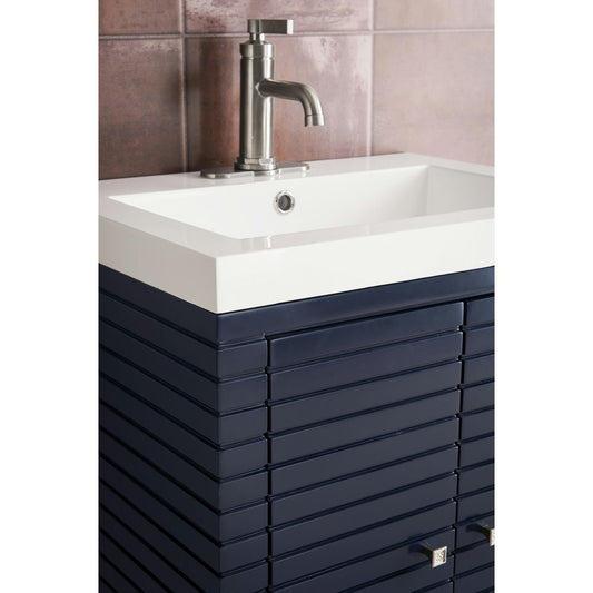 Linden 24" Single Vanity Cabinet, Navy Blue w/ White Glossy Composite Countertop