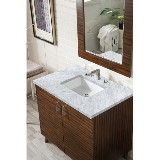 Metropolitan 36" American Walnut Single Vanity w/ 3 CM Carrara Marble Top