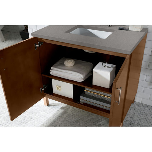 Metropolitan 36" Single Vanity, American Walnut, w/ 3 CM Gray Expo Quartz Top