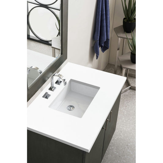 Metropolitan 36" Single Vanity, Silver Oak, w/ 3 CM Classic White Quartz Top