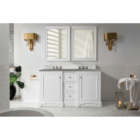 De Soto 60" Double Vanity, Bright White w/ 3 CM Gray Expo Quartz Top