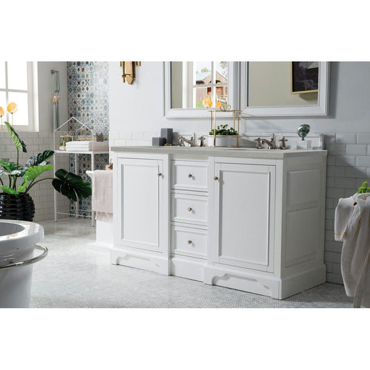 De Soto 60" Double Vanity, Bright White w/ 3 CM Eternal Serena Quartz Top