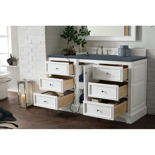 De Soto 60" Single Vanity, Bright White w/ 3 CM Charcoal Soapstone Quartz Top