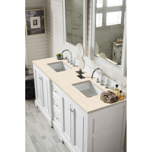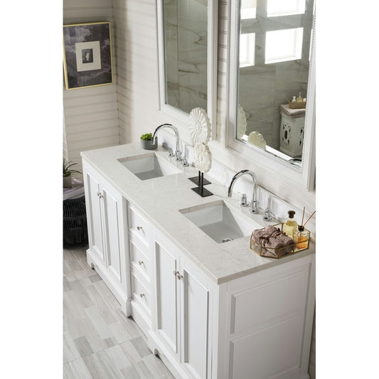 De Soto 72" Double Vanity, Bright White w/ 3 CM Eternal Jasmine Pearl Quartz Top