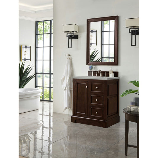 De Soto 30" Single Vanity, Burnished Mahogany w/ 3 CM Gray Expo Quartz Top