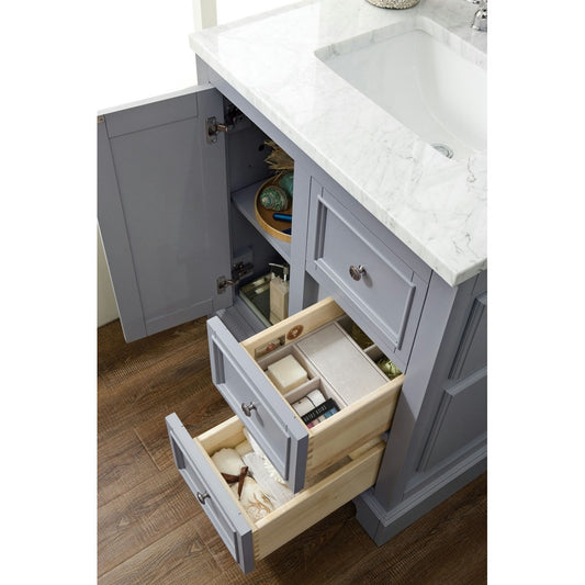 De Soto 30" Single Vanity, Silver Gray w/ 3 CM Carrara Marble Top
