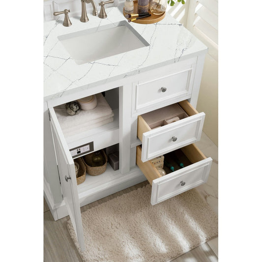 De Soto 36" Single Vanity, Bright White, w/ 3 CM Ethereal Noctis Quartz Top