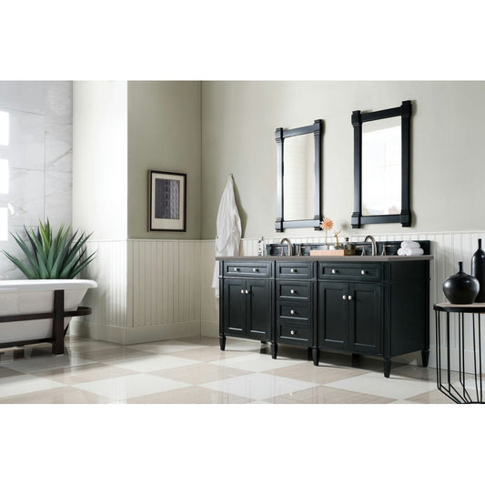Brittany 72" Black Onyx Double Vanity w/ 3 CM Gray Expo Quartz Top