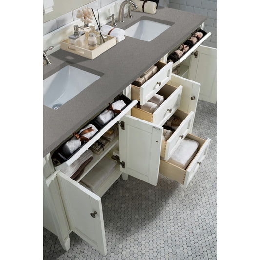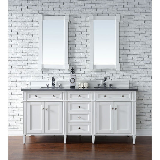 Brittany 72" Bright White Double Vanity w/ 3 CM Gray Expo Quartz Top