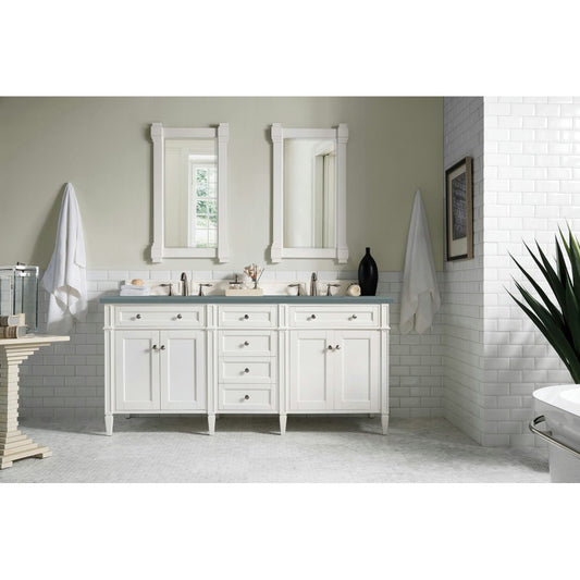 Brittany 72" Bright White Double Vanity w/ 3 CM Cala Blue Quartz Top