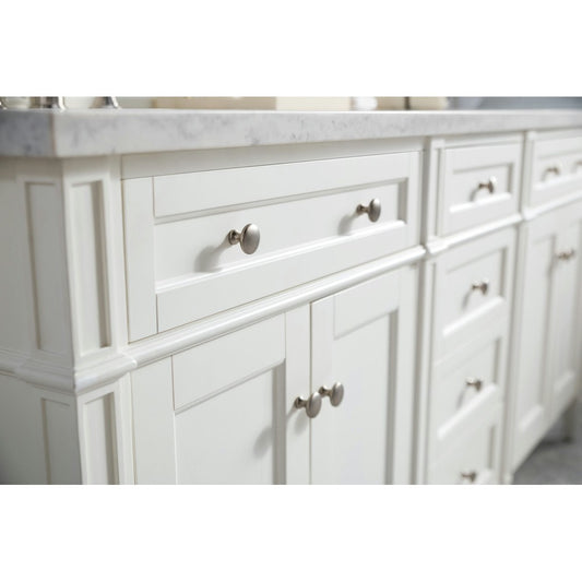 Brittany 72" Bright White Double Vanity w/ 3 CM Carrara Marble Top