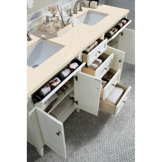 Brittany 72" Bright White Double Vanity w/ 3 CM Eternal Marfil Quartz Top