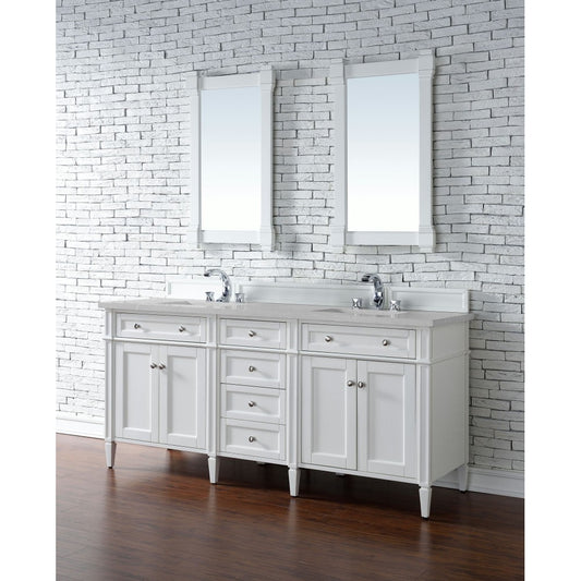 Brittany 72" Bright White Double Vanity w/ 3 CM Eternal Serena Quartz Top