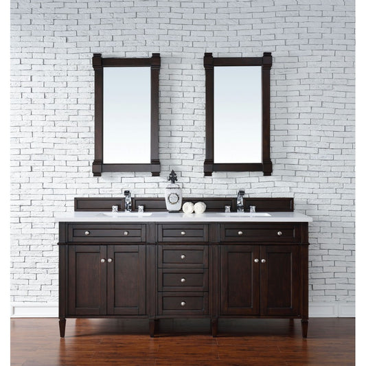 Brittany 72" Burnished Mahogany Double Vanity w/ 3 CM Classic White Quartz Top