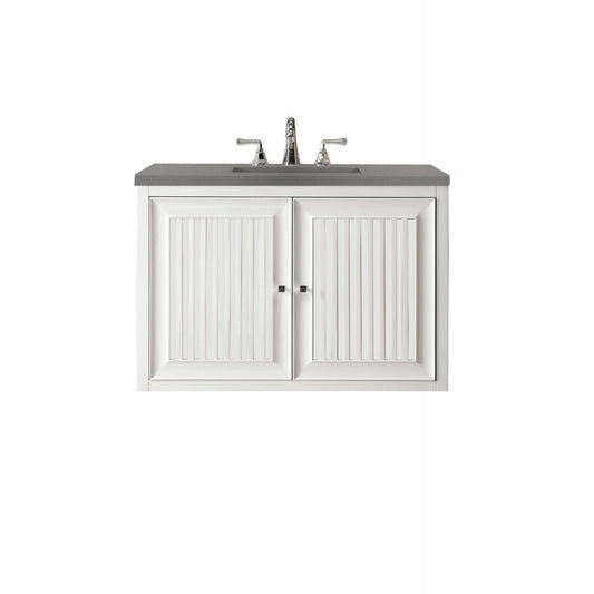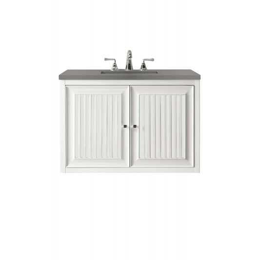 Athens 30" Single Vanity Cabinet, Glossy White, w/ 3 CM Gray Expo Quartz Top