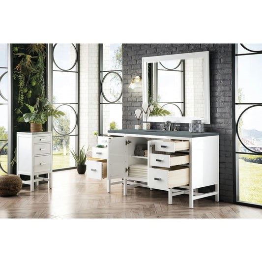 Addison 60" Single Vanity Cabinet , Glossy White, w/ 3 CM Gray Expo Quartz Top