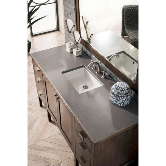 Addison 60" Single Vanity , Mid Century Acacia, w/ 3 CM Gray Expo Quartz Top
