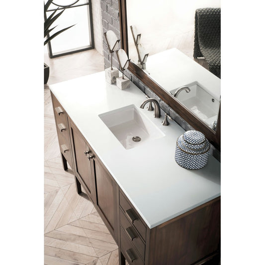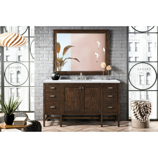 Addison 60" Single Vanity , Mid Century Acacia, w/ 3 CM Classic White Quartz Top