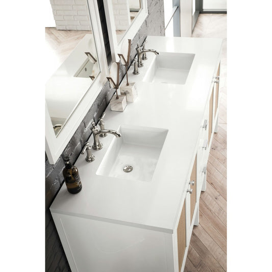 Addison 72" Double Vanity, Glossy White, w/ 3 CM Classic White Quartz Top