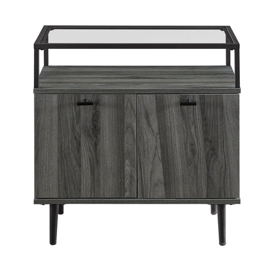 Modern Glass Top 2-Door Nightstand - Slate Gray