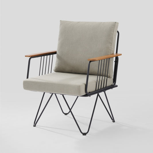 Modern Metal and Wood Detail Hairpin Leg Patio Chair - Sandstone