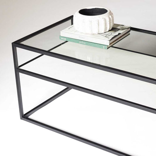 Modern Reversible Shelf Coffee Table - Faux White Marble/Faux Dark Concrete