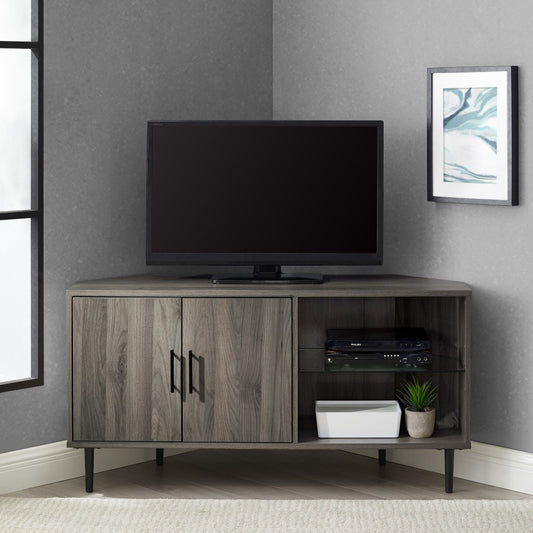 Nora 48" 2 Door Glass Shelf Corner TV Stand - Slate Gray