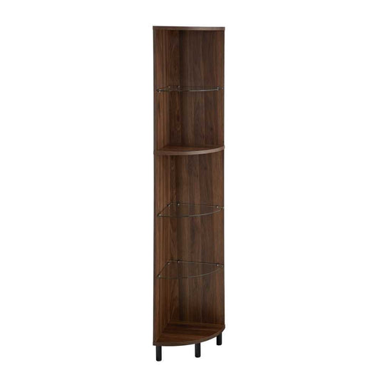 Nora 68" Wood and Glass Corner Bookshelf - Dark Walnut