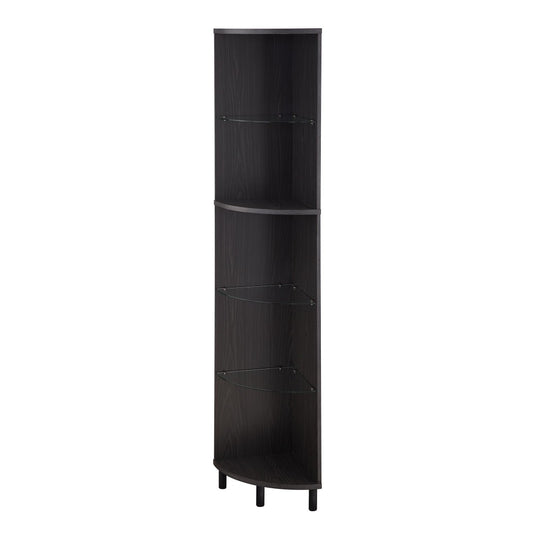 Nora 68" Wood and Glass Corner Bookshelf - Graphite