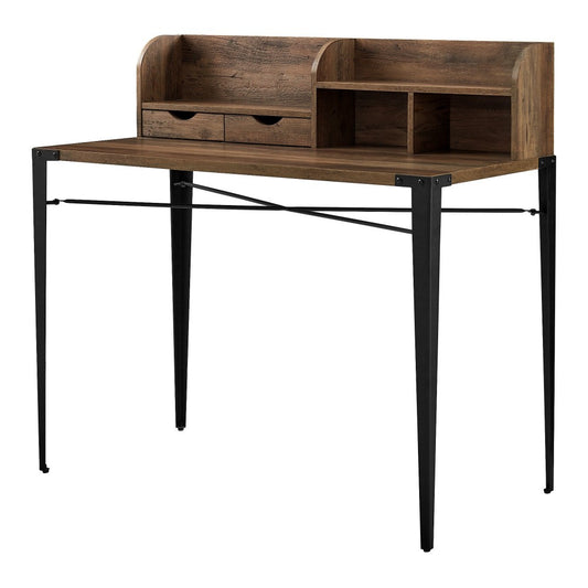 Nyla 42" Angle Iron Desk with Hutch - Rustic Oak
