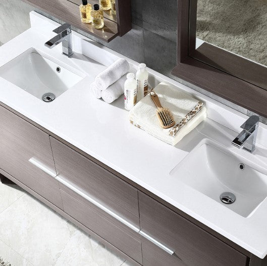 Fresca Allier 72" Gray Oak Modern Double Sink Bathroom Vanity With Mirror