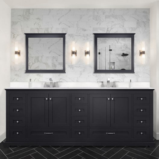 84" Espresso Double Vanity, Quartz Top, Square Sinks, 34" Mirrors With Faucets