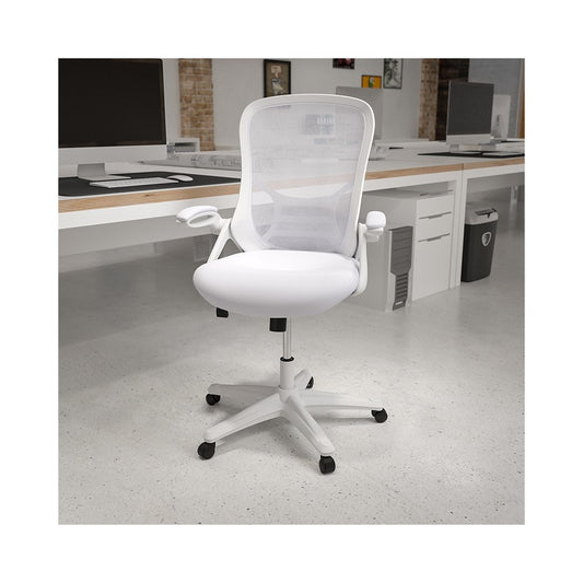High Back White Mesh Ergonomic Swivel Office Chair with White Frame and Flip-up Arms