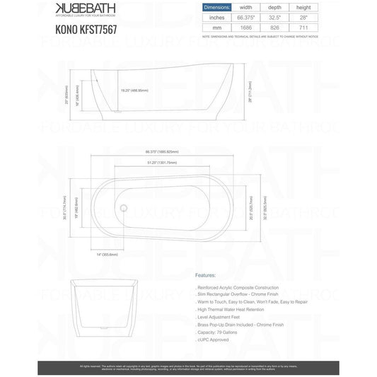 Kube Contemporanea 67'' White Free Standing Bathtub