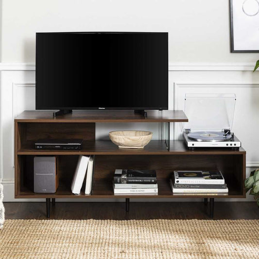 Harper 60" Asymmetrical Wood and Glass Console - Dark Walnut