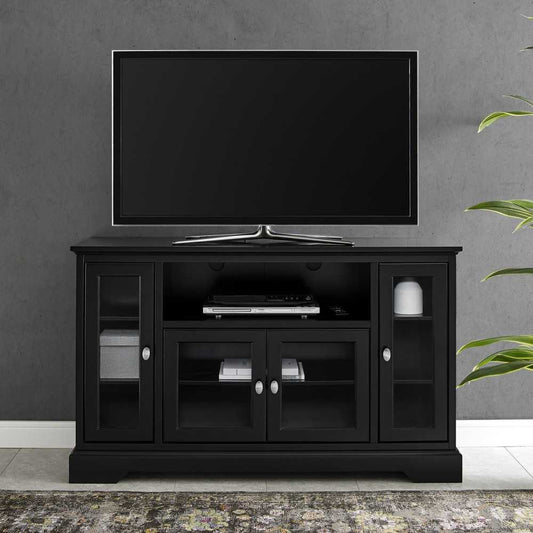 Highboy 52" Transitional Glass Wood TV Stand - Black