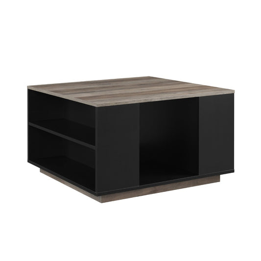 Delphyne 30" Square Storage Coffee Table - Solid Black/Gray Wash