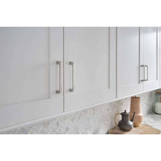 36" White Percival Vanity, left offset, Steel Gray Cultured Marble Vanity Top, undermount rectangle bowl