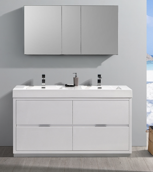 Fresca Valencia 60" Glossy White Free Standing Modern Bathroom Vanity