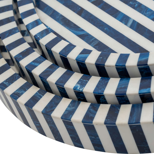 Resin, S/3 12/14/16" Round Trays Blue