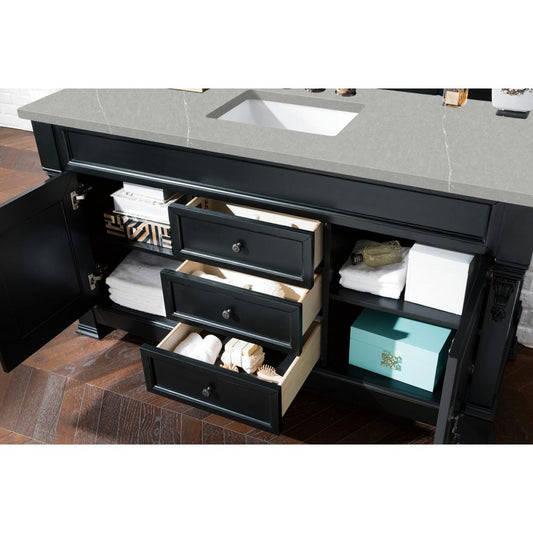 Brookfield 60" Single Vanity, Antique Black w/ 3 CM Gray Expo Quartz Top