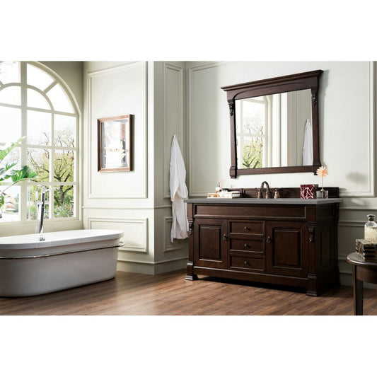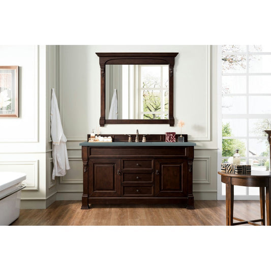 Brookfield 60" Single Vanity, Burnished Mahogany w/ 3 CM Gray Expo Quartz Top