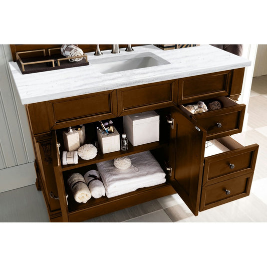 Brookfield 48" Single Vanity, Country Oak w/ 3 CM Carrara Marble Top