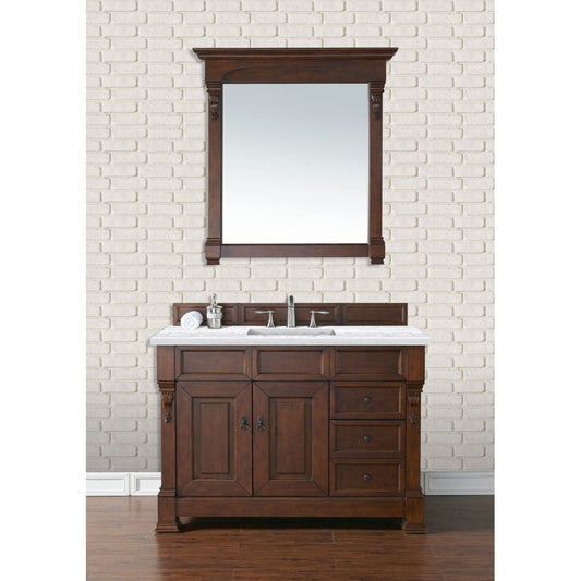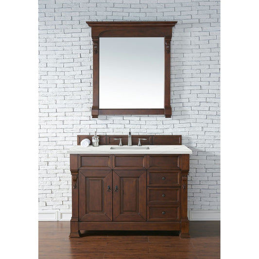 Brookfield 48" Single Vanity, Warm Cherry w/ 3 CM Carrara Marble Top