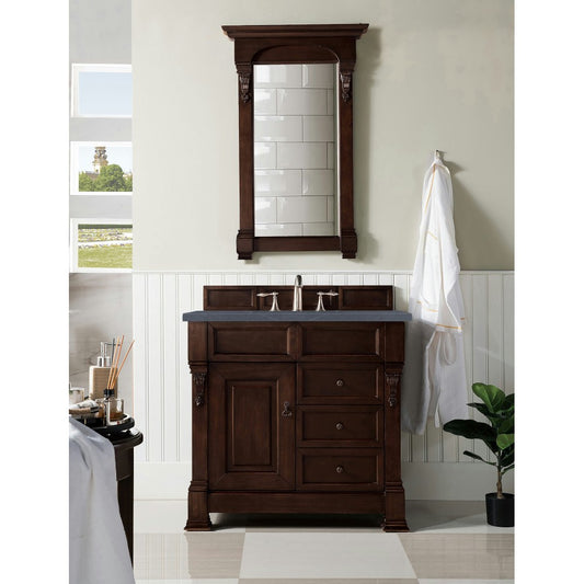 Brookfield 36" Single Vanity, Burnished Mahogany w/ 3 CM Cala Blue Quartz Top